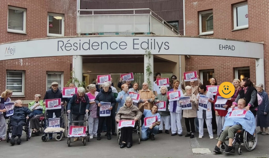 À Lille, les résidents de l’EHPAD Edilys, accompagnés des professionnels et des familles, ont brandi affiches et brassards pour affirmer haut et fort : “Les vieux méritent mieux.”